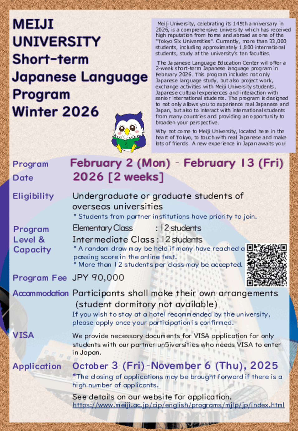 - Alle Infos zum Programm und vieles mehr finden sie auch in den offiziellen Infozetteln der Meiji-Universität unten